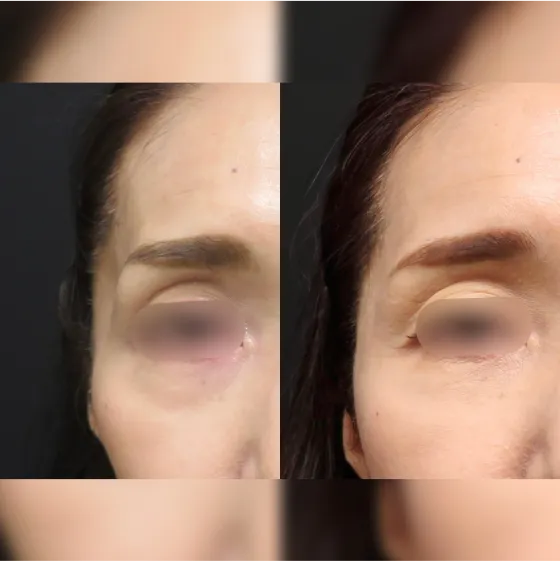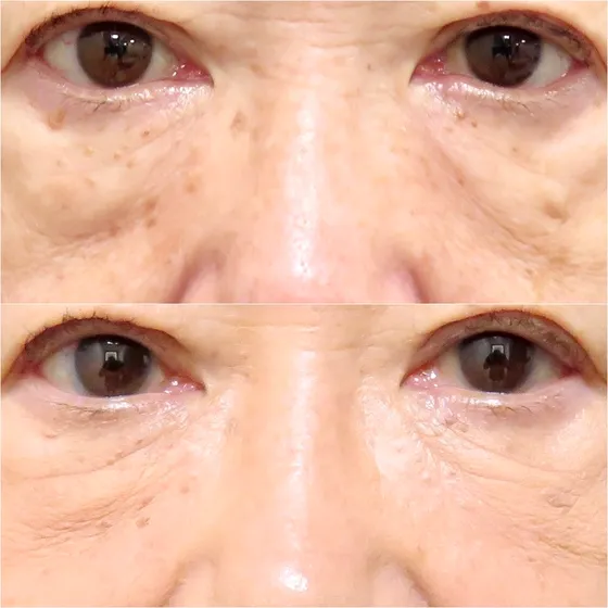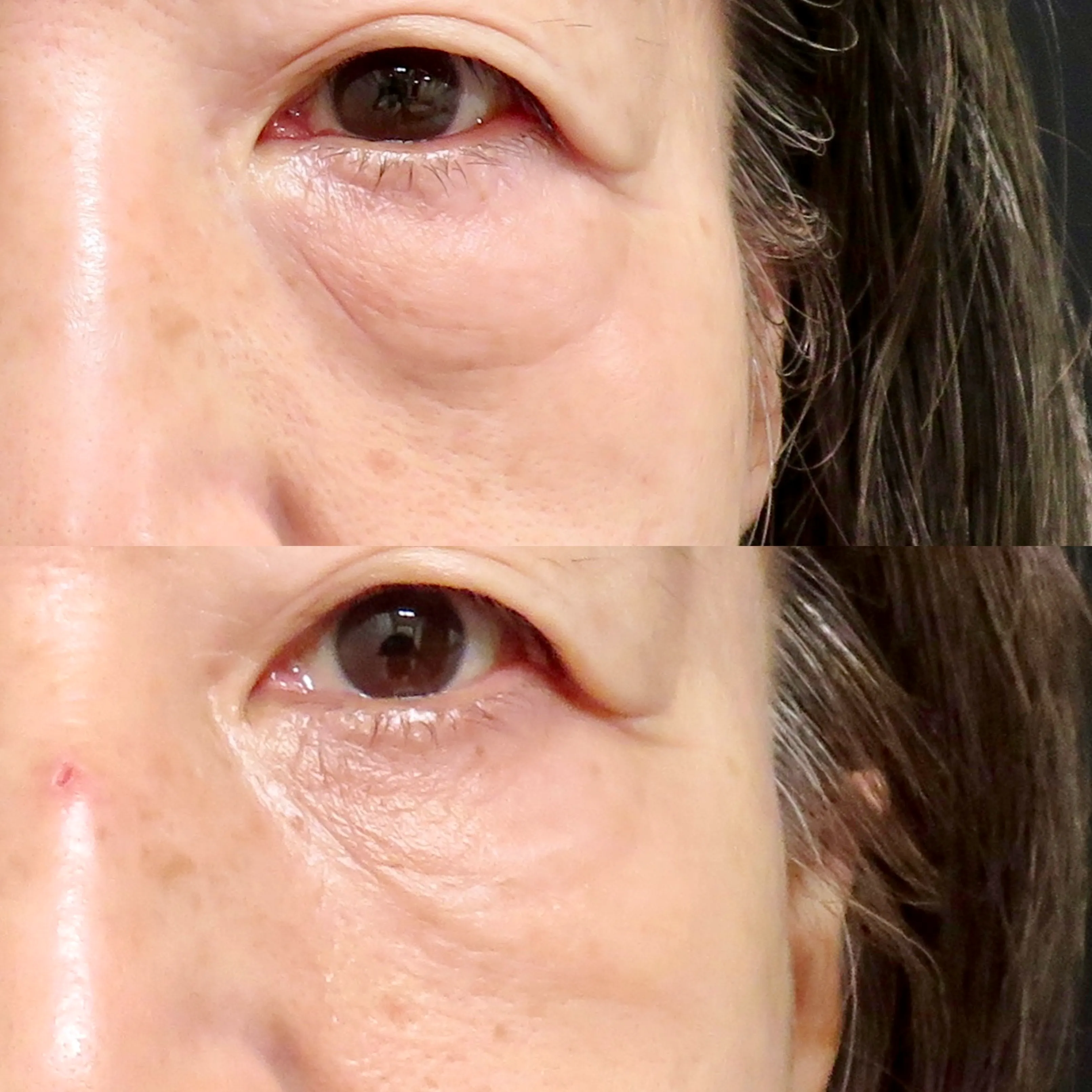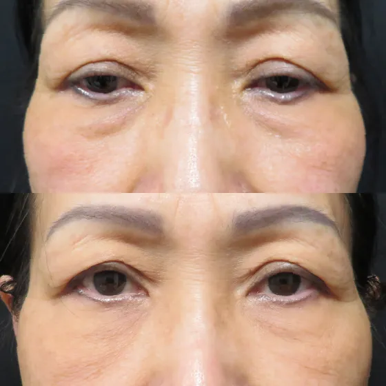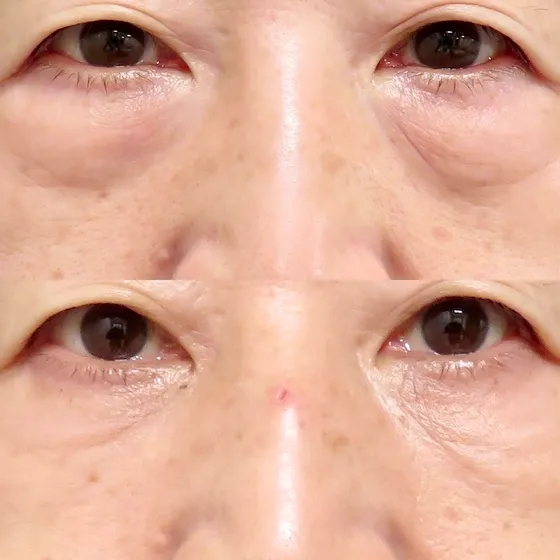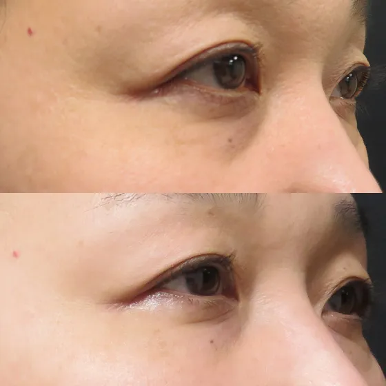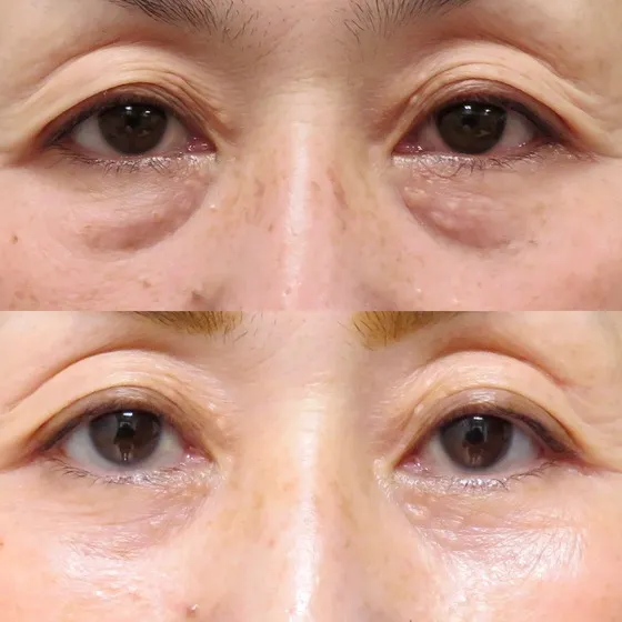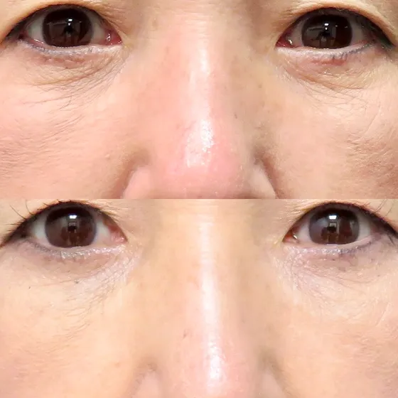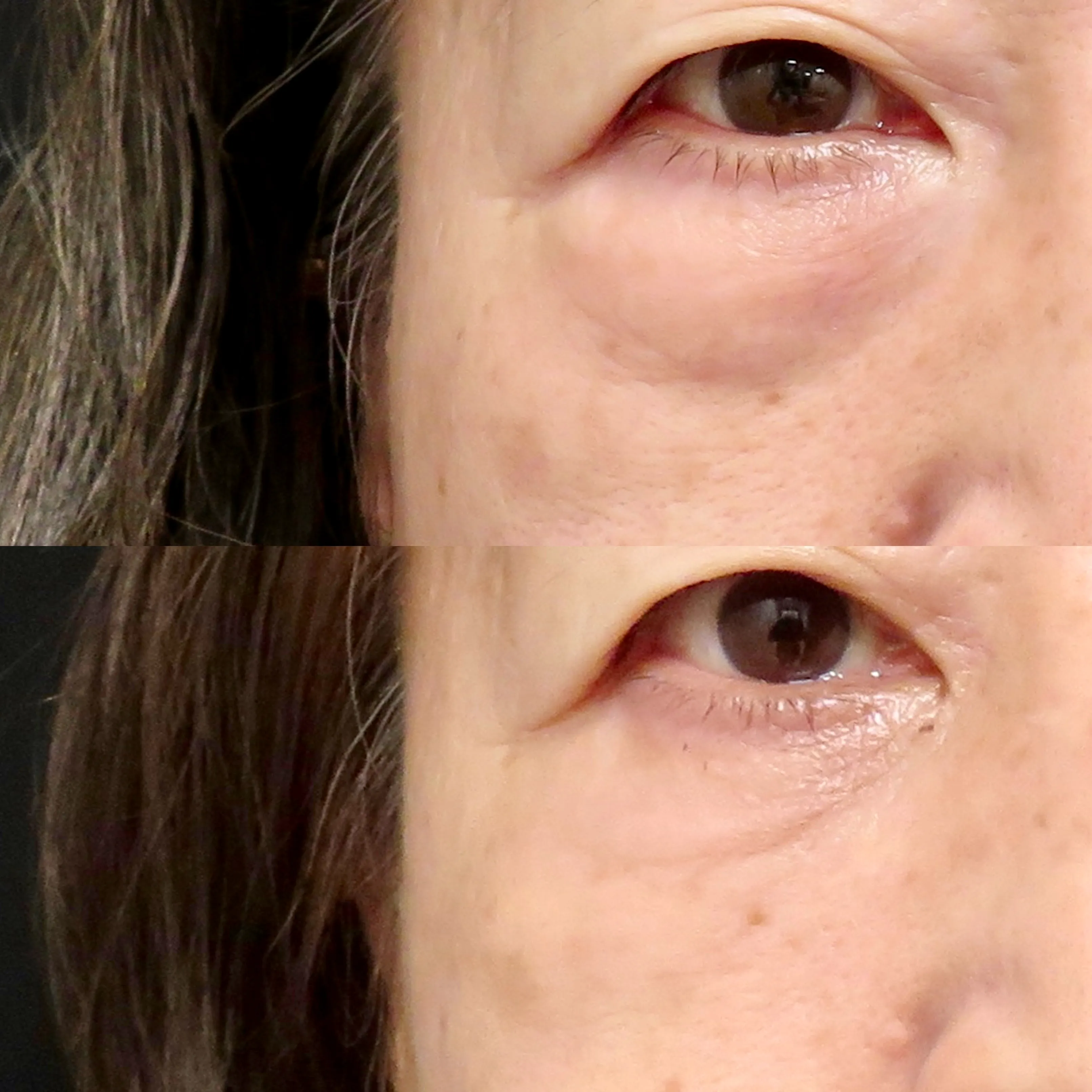 施術名:PRP下眼瞼脱脂術/施術の説明:眼窩脂肪を取り出す「下眼瞼脱脂術」と「若返りPRP注射」を組み合わせハリのある美しい目元にする施術です。/施術の副作用(リスク):内出血や腫れを生じることがあります。