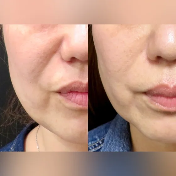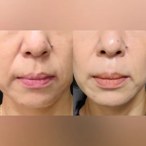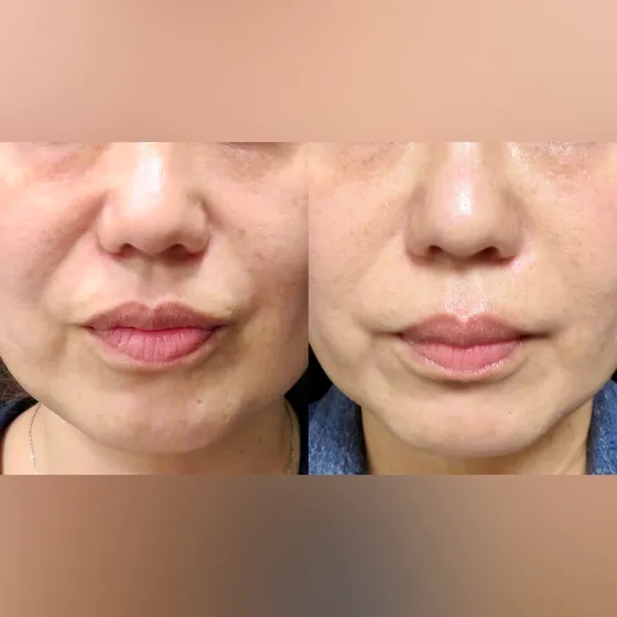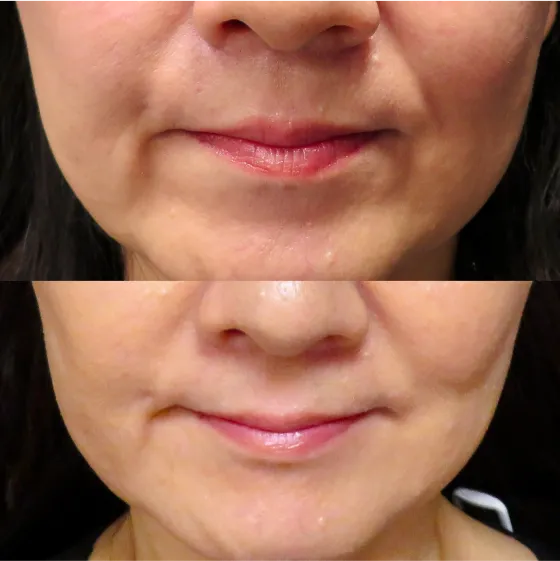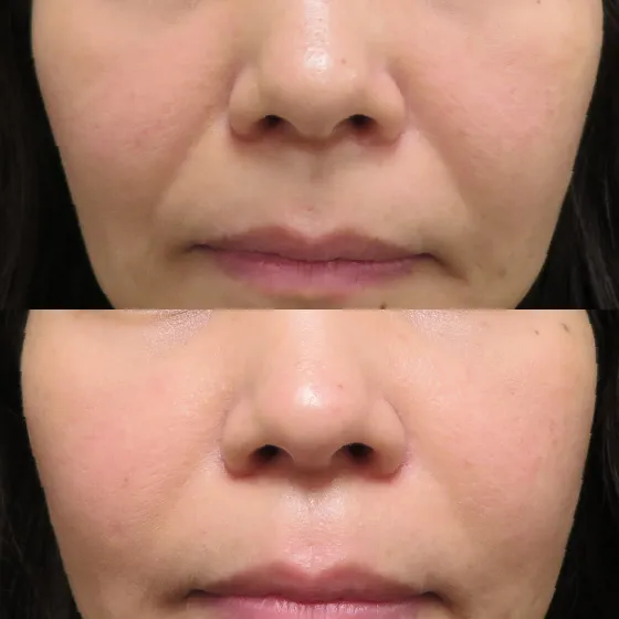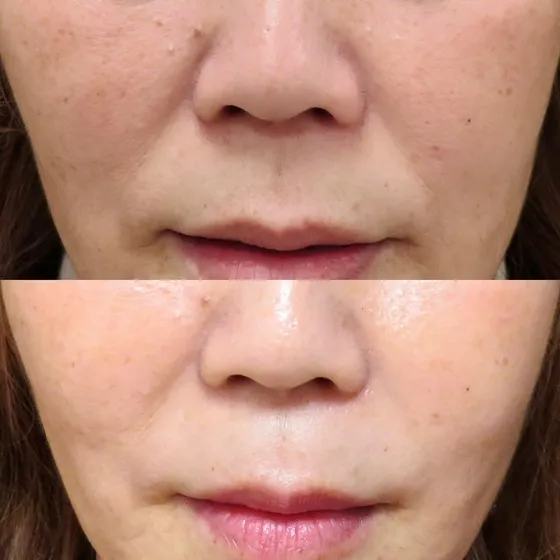 施術名:若返りPRP注射(ほうれい線)/施術の説明:ご自身の成長因子を、ほうれい線に注入することで、内側からふっくらとハリ感を出すことができ深く刻まれたほうれい線を改善することができます。