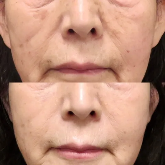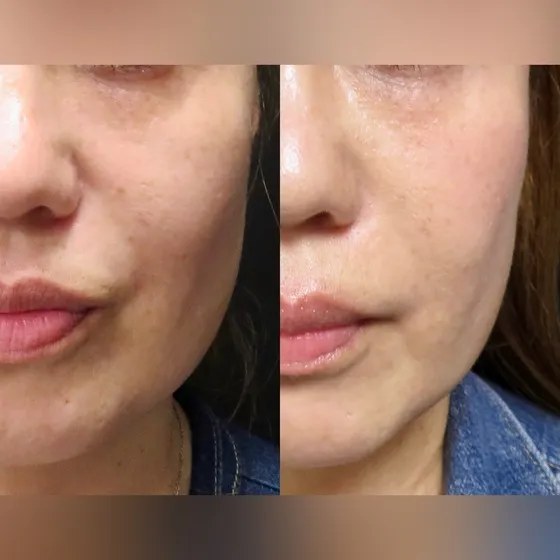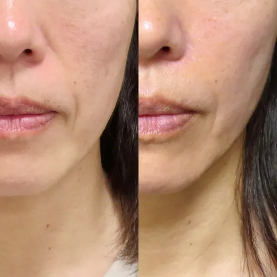 施術名:水光PRP注射(全顔)/施術の説明:ニキビ跡・クレーターを水光PRP注射で改善された患者様です。症状が改善しただけでなく、ハリのあるお肌になっております。/副作用(リスク):内出血や腫れを生じることがあります。
