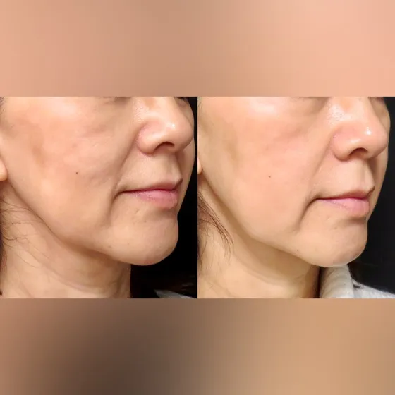 施術名:PRPスレッドリフト(ライト)/施術の説明:従来のスレッド単独では得られない、長期間のリフトアップ効果、輪郭補正効果 、美肌再生効果のトリプル効果により、お顔の劇的な若返り効果が得られます。/施術の副作用(リスク):内出血や腫れを生じることがあります。