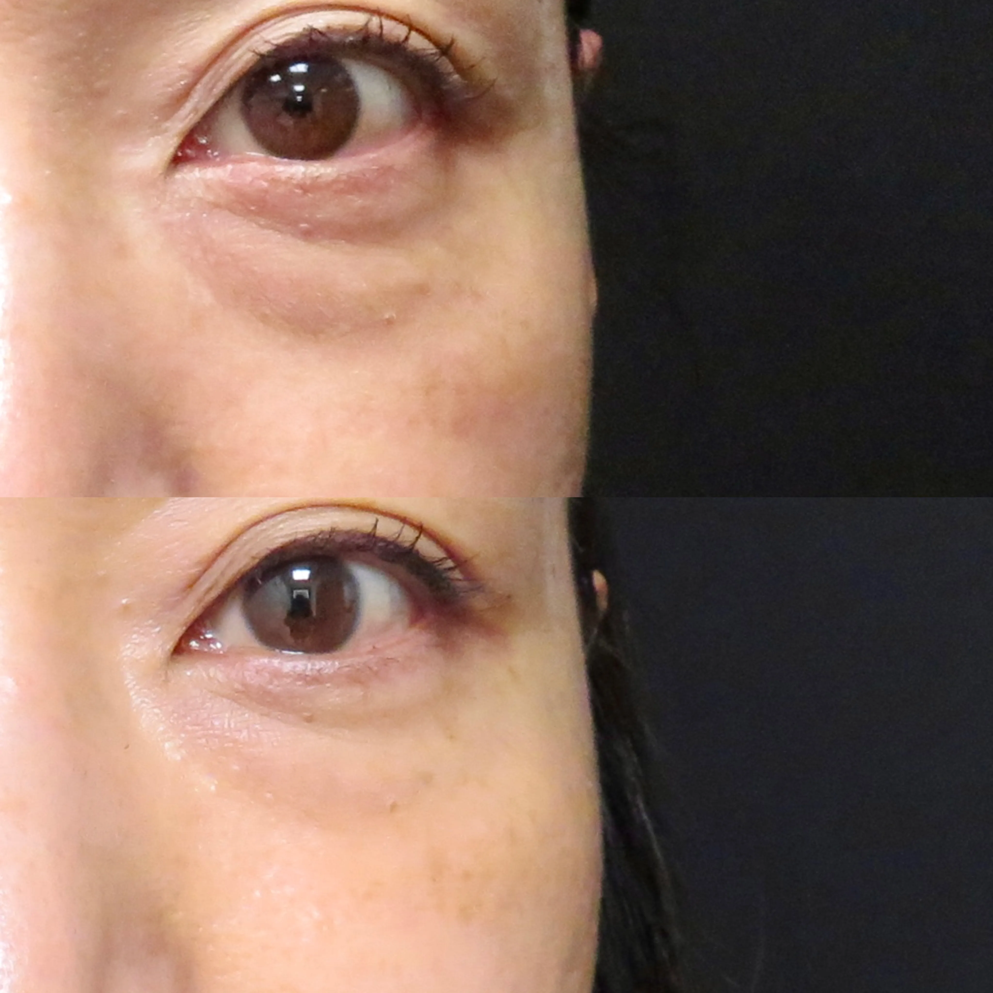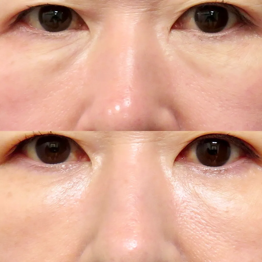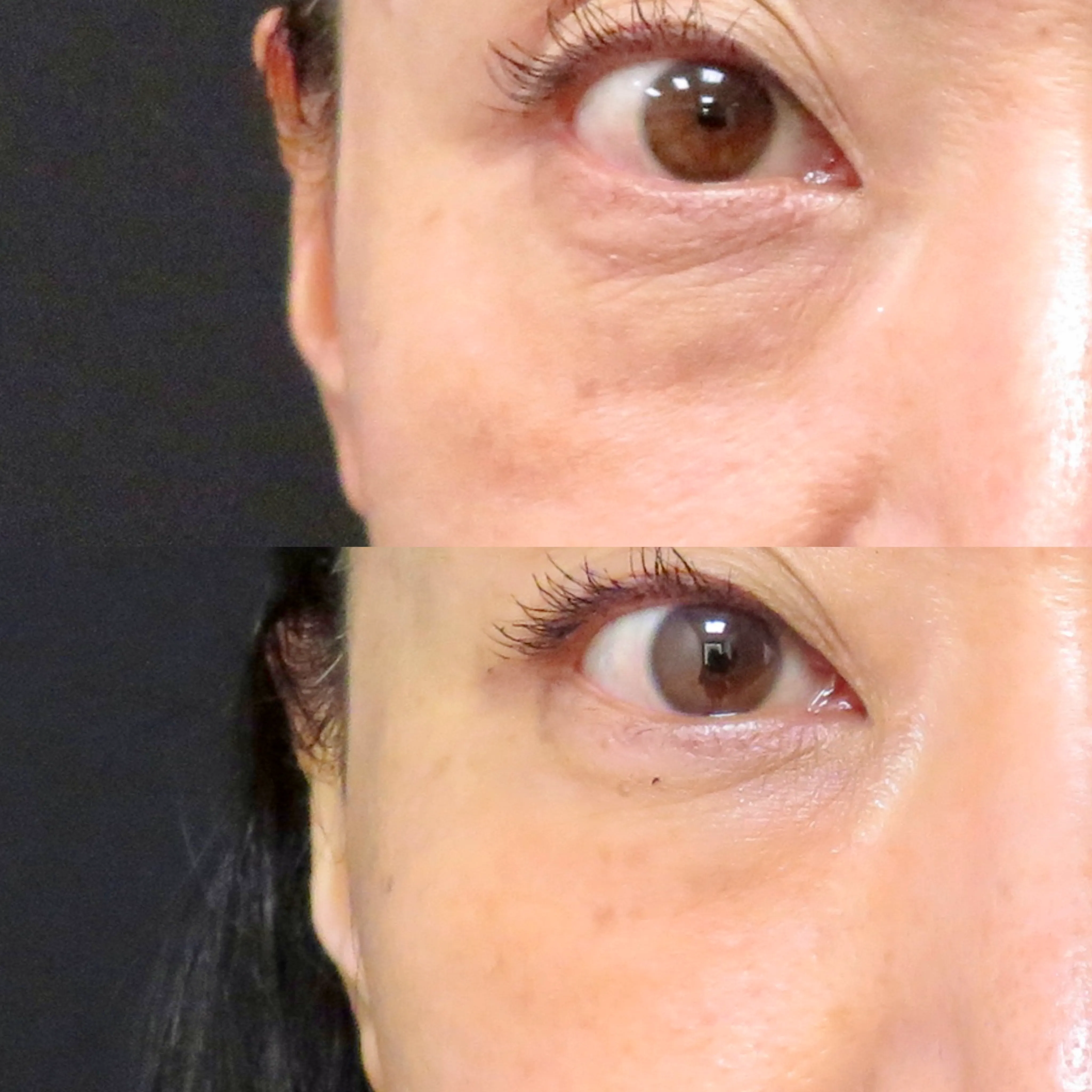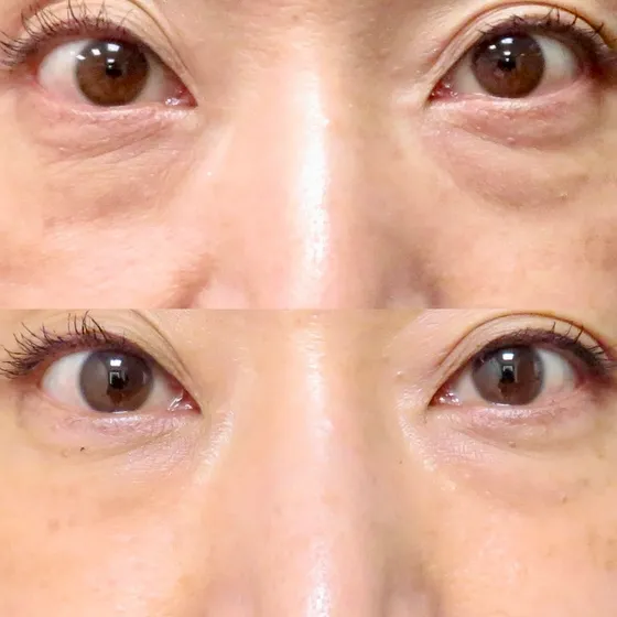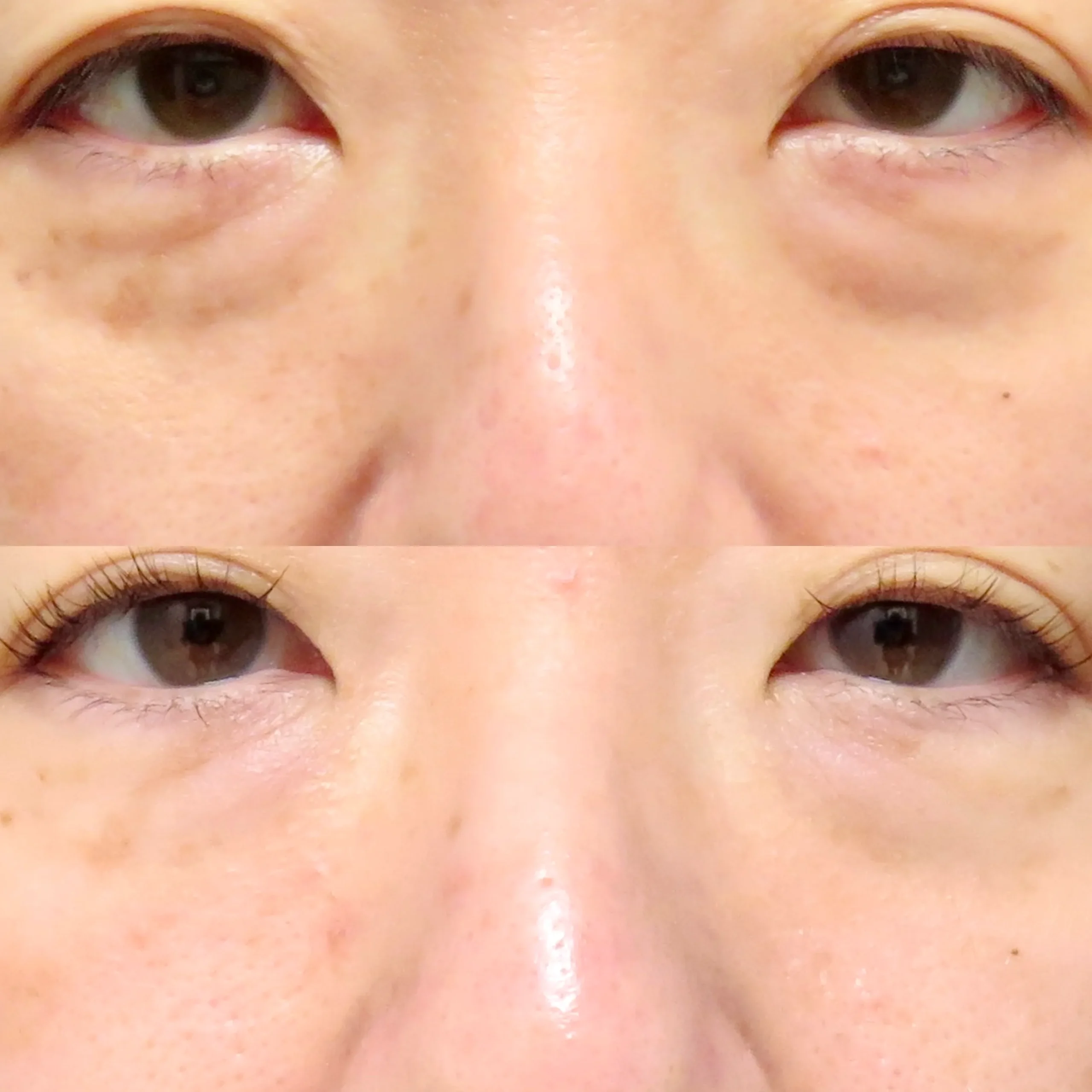施術名:若返りPRP注射(目の下)/施術の説明:ご自身の成長因子を皮下に注入することで目の下のクマやちりめんジワが改善し、若々しい目元になっております。/施術の副作用(リスク):内出血や腫れを生じることがあります。