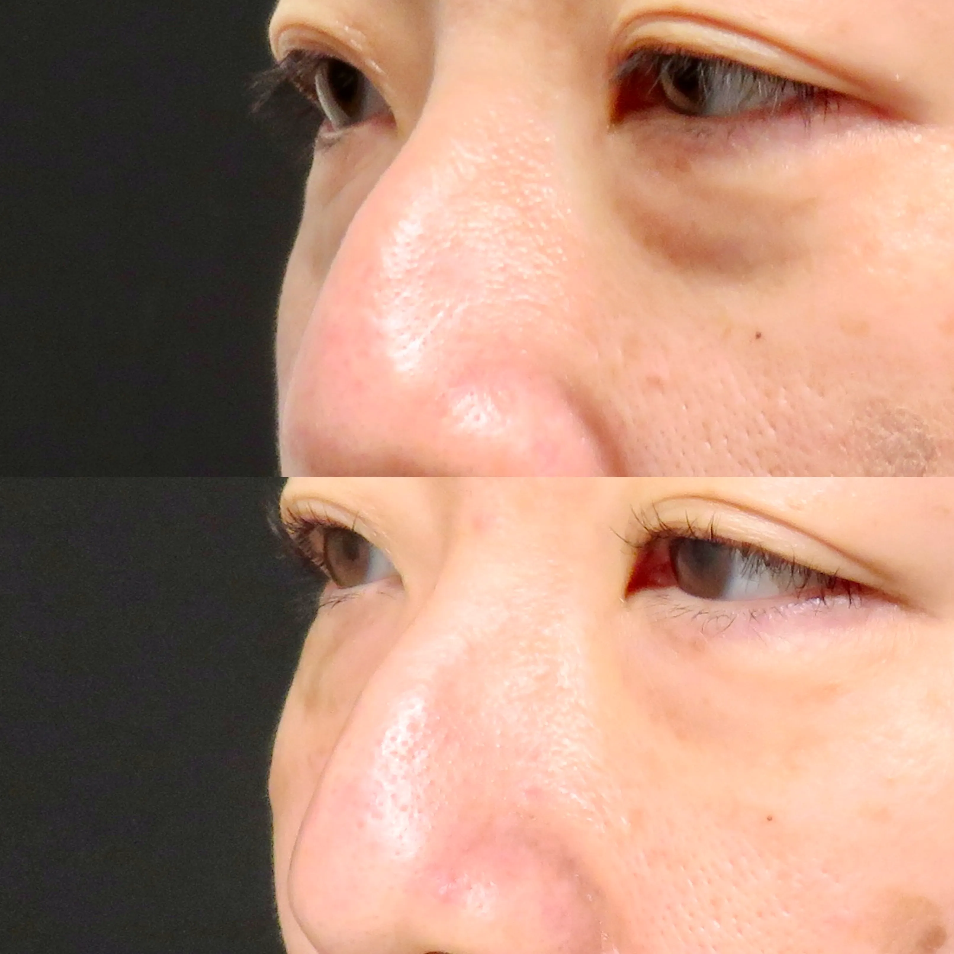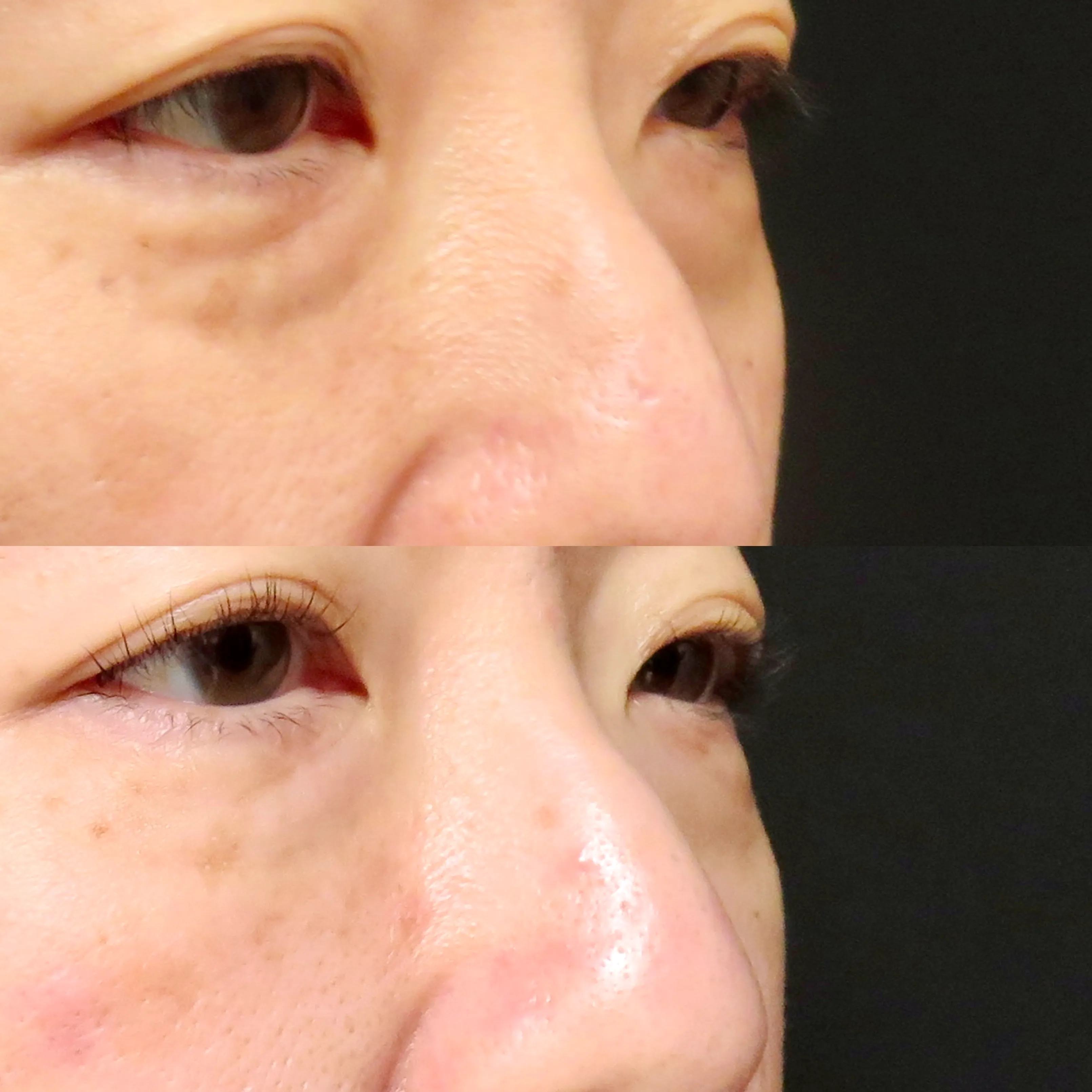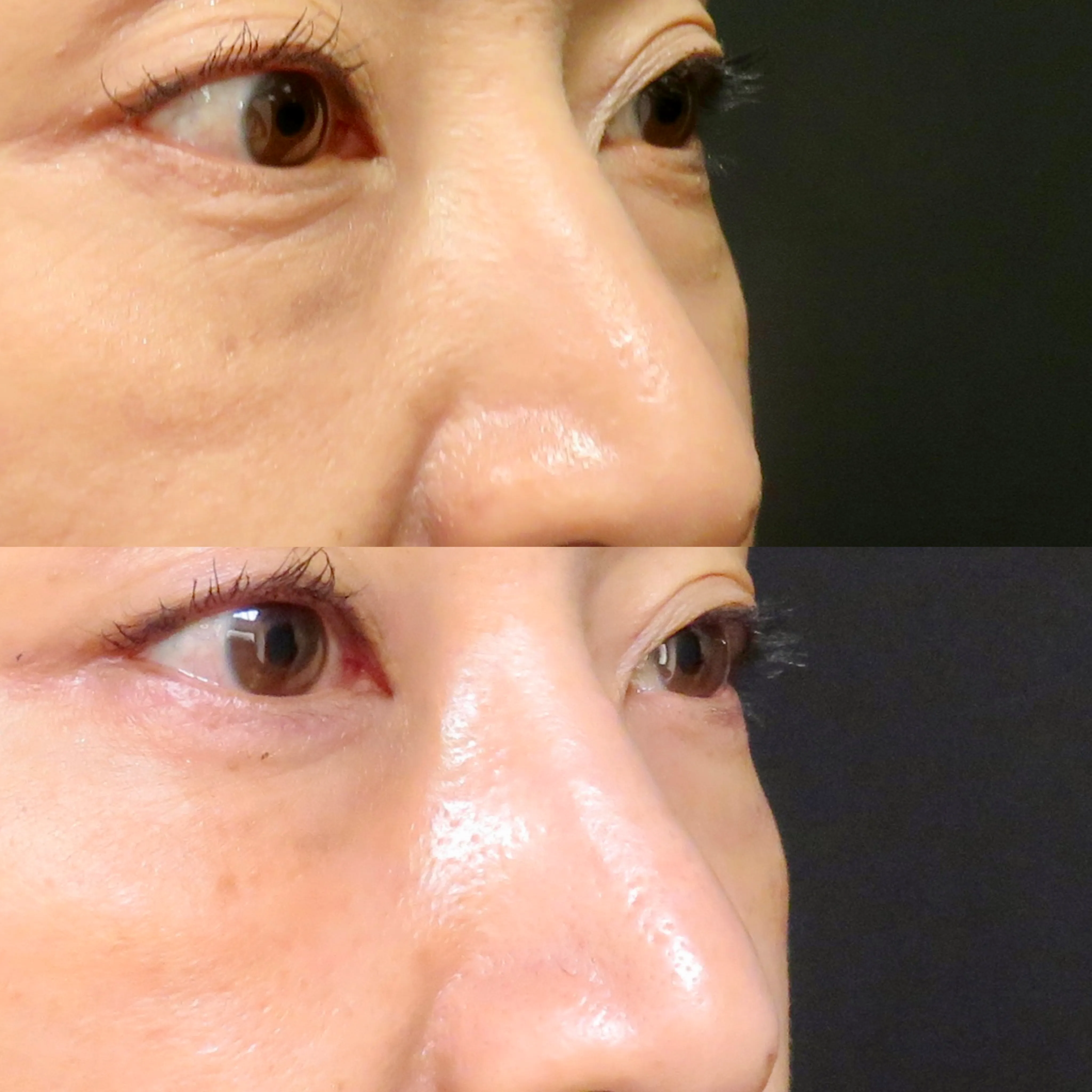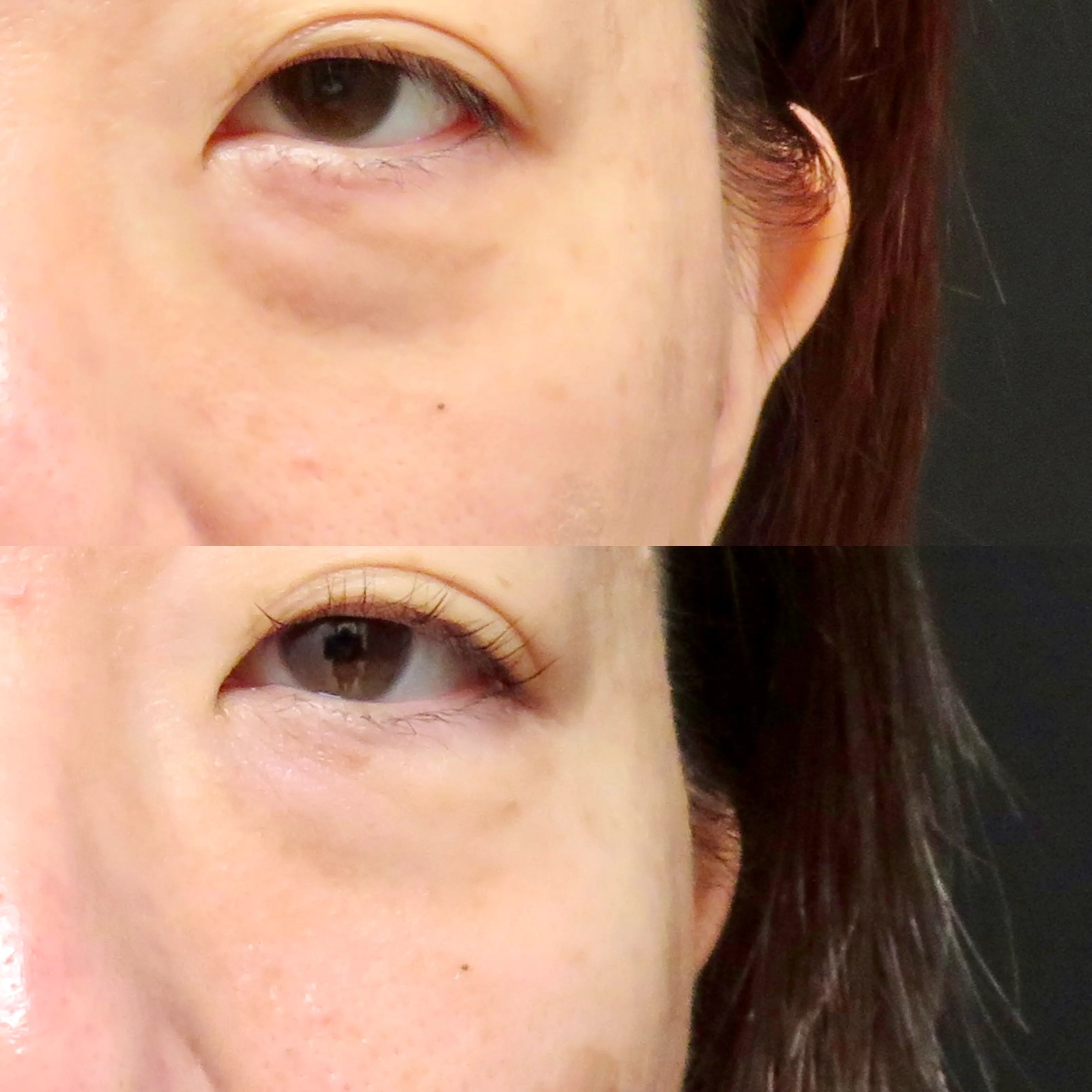 施術名:若返りPRP注射(目の下)/施術の説明:ご自身の成長因子を皮下に注入することで目の下のクマやちりめんジワが改善し、若々しい目元になっております。/施術の副作用(リスク):内出血や腫れを生じることがあります。