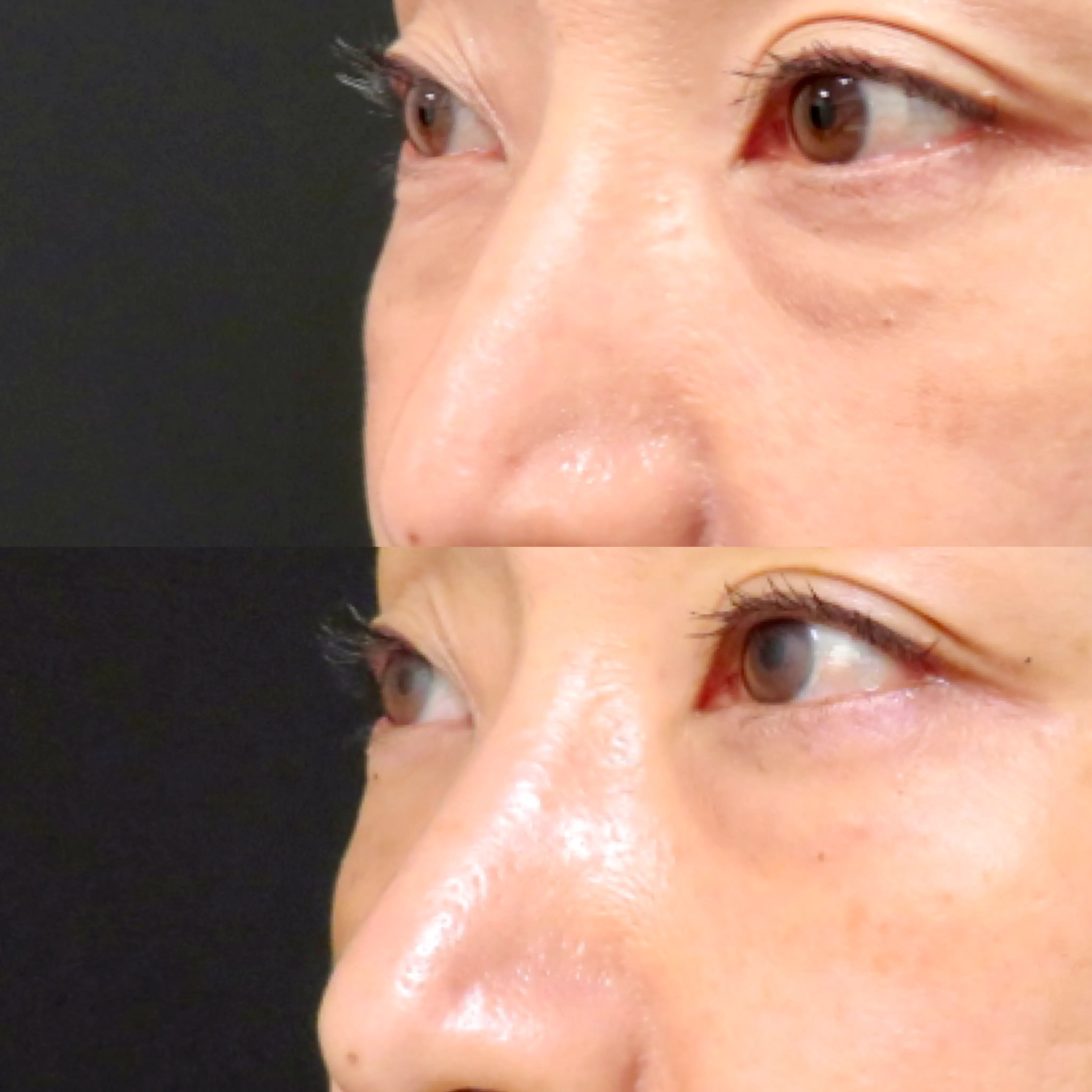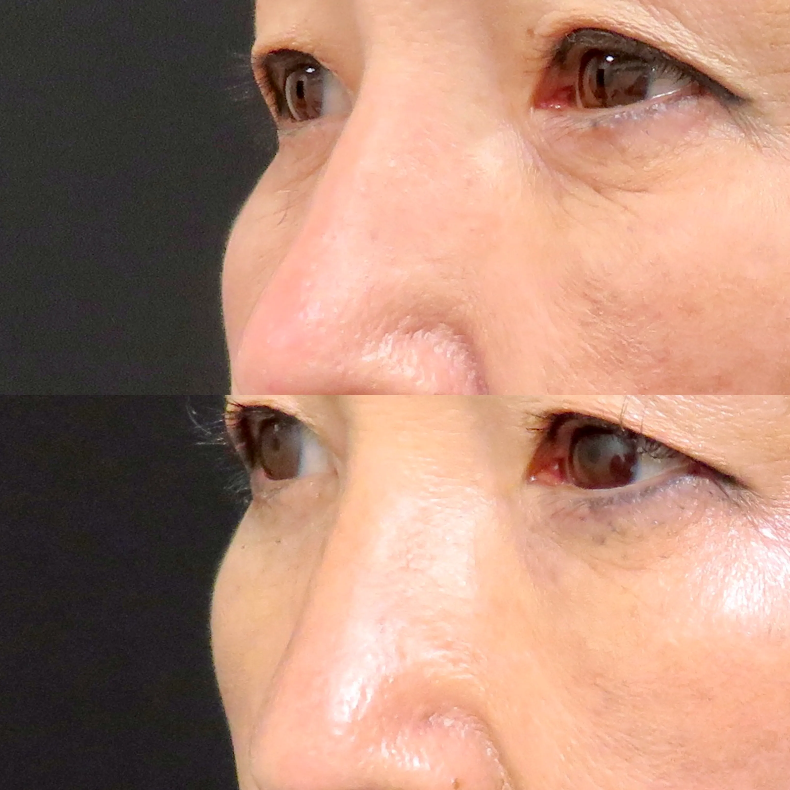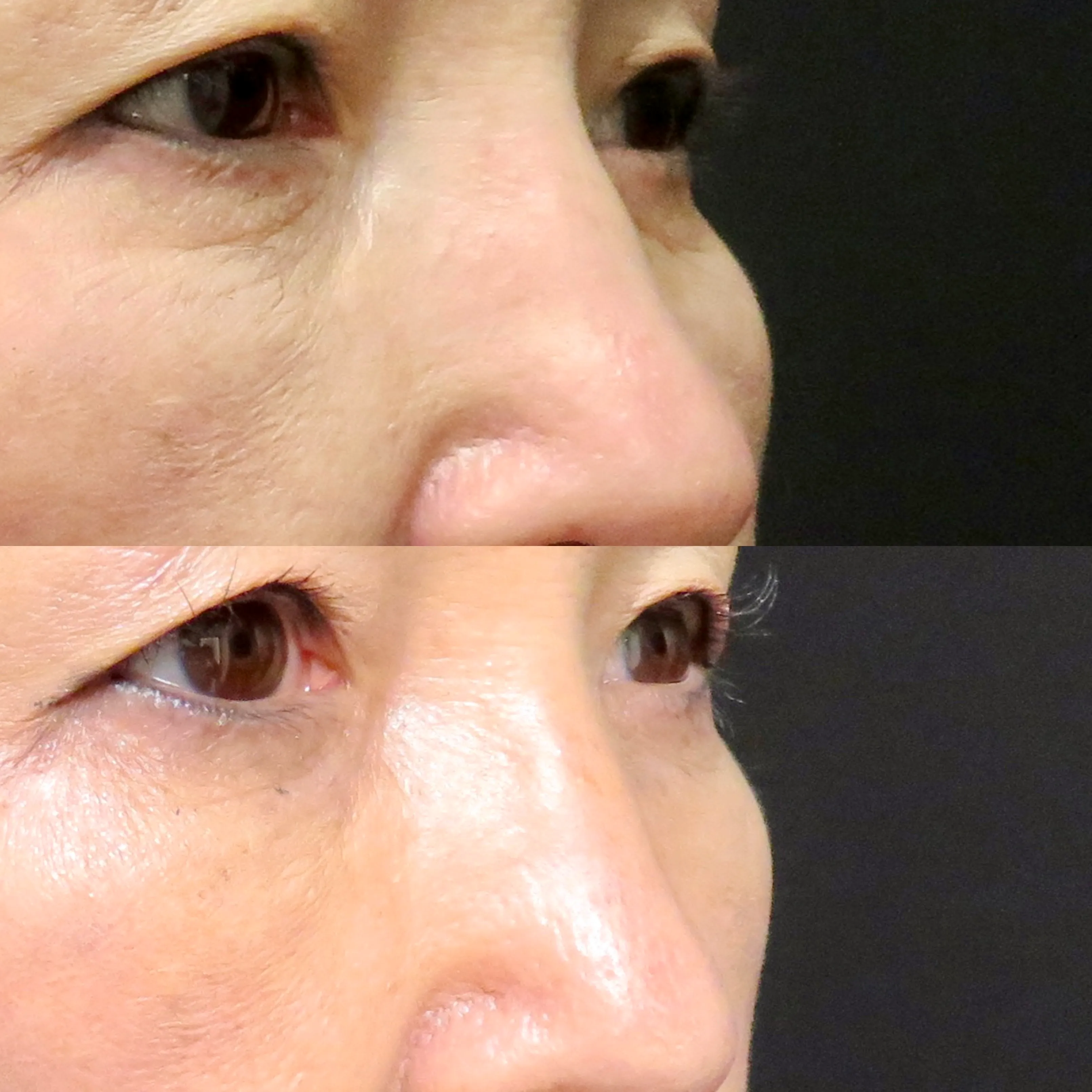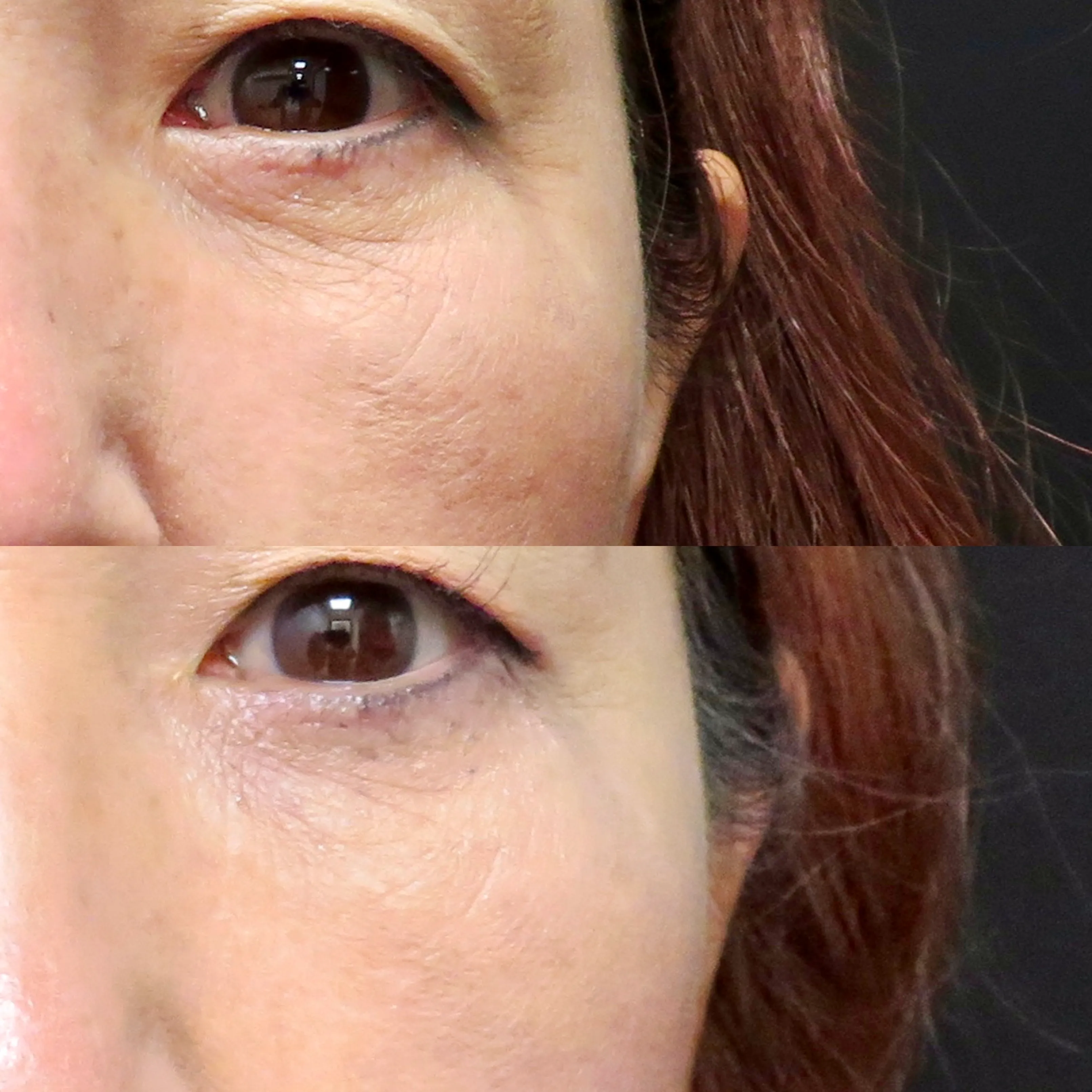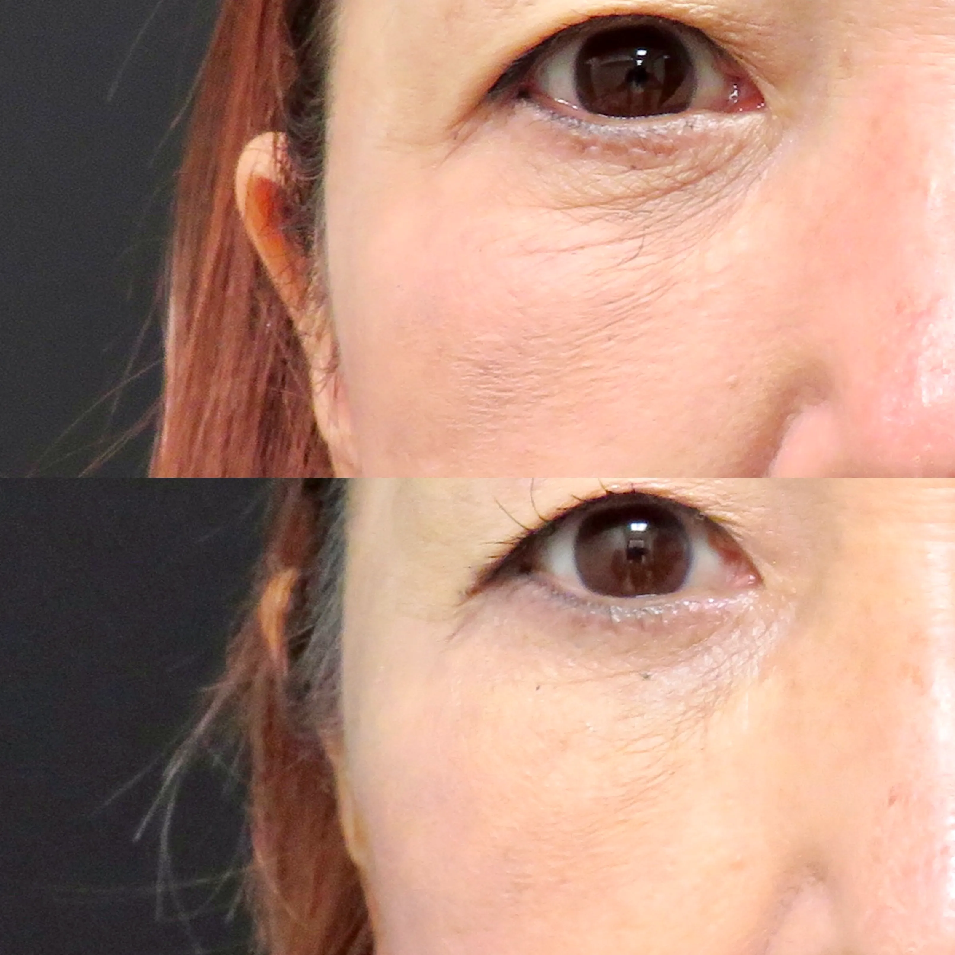 施術名:若返りPRP注射(目尻のシワ)/施術の説明:ご自身の成長因子を皮下に注入することで目尻のシワが改善し、若々しい目元になっております。/施術の副作用(リスク):内出血や腫れを生じることがあります。