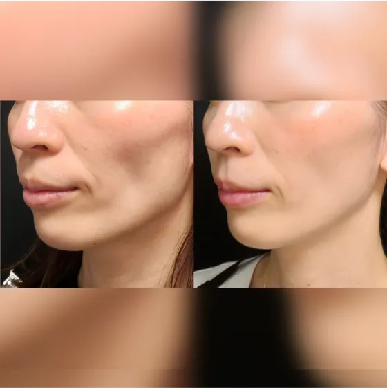 施術名:若返りPRP注射(アゴ)/施術の説明:アゴの先端にPRP注射を注入することで、フェイスラインをシャープにみせ輪郭を綺麗にすることができます。/施術の副作用(リスク):内出血や腫れを生じることがあります。